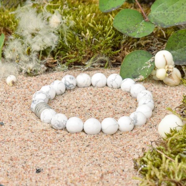 ⚪️ Náramek z howlitu přináší klid, pomáhá zklidnit mysl a dobře si odpočinout po dni plném zážitků. Učí trpělivosti a pomáhá odstranit vztek i nekontrolovaný hněv, posiluje pozitivní povahové rysy, zlepšuje paměť a pomáhá realizovat materiální i duchovní touhy.