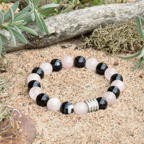 Náramek z černého achátu a růženínu