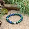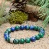 Náramek z chryzokolu a lazuritu posiluje a zvýrazňuje pozitivní povahové rysy – sebeuvědomění, odvahu, vytrvalost a sebedůvěru, posiluje fyzické i duchovní tělo, oživuje, naplňuje vitalitou a iniciativou kořenovou čakru, sakrální čakru a čakru solar plexu.