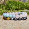Mužský náramek s krystaly černého obsidiánu, tygřího oka a hematitu, které uzemňují, chrání, posilují, dodávají pocit jistoty, stability, podporují uvědomění a rozlišování