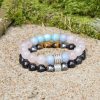 Ženský náramek s krystaly růženínu, andělitu a amazonitu, které naplňují život ženy láskou, mírem, moudrostí, vědomím, harmonií, ochranou, něhou a láskou