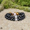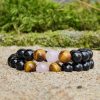 Zde je několik tipů, jak nosit masivní párový náramek s černým obsidiánem, růženínem a tygřím okem.