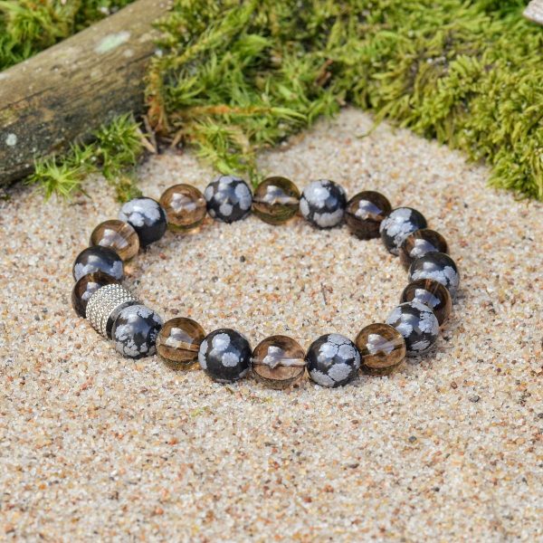 Náramek ze sněhových vloček z obsidiánu a kouřového křemene
